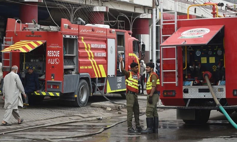 فائربریگیڈ حکام نے آگ کو تیسرے درجے کا قرار دیا ہے اور اسے بجھانے کے لیے فوری کارروائی جاری ہے۔
