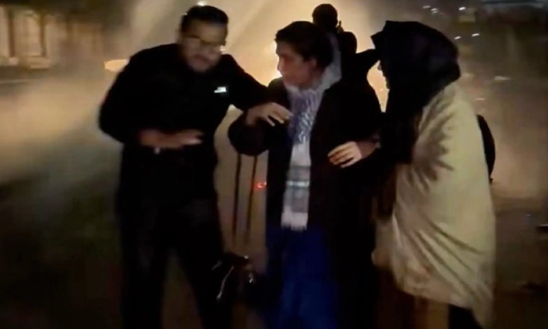 پاکستان تحریک انصاف کے رکن قومی اسمبلی شاہد خٹک بھی اس دھرنے میں موجود تھے، واٹر کینن کا استعمال شروع ہونے پر انہوں نے عمران خان کی بہنوں کو گھیرے رکھا اور کچھ فاصلے کے بعد وہ قریب موجود ایک نالے میں گر گئے جس سے ان کی ٹانگ کی ہڈی بھی ٹوٹ گئی۔