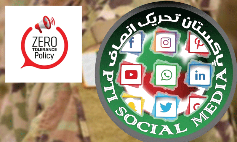 سینیئر صحافی انصار عباسی کے مطابق پارٹی کے ایک ذریعے نے بتایا کہ پی ٹی آئی کو یہ باور کرایا گیا ہے کہ گزشتہ 3 برس سے جاری فوج مخالف بیانیے اور تنقیدی مہمات کو مزید برداشت نہیں کیا جائے گا اور ادارے یا اس کی اعلیٰ قیادت پر حملوں کے حوالے سے ’زیرو ٹولرنس‘ کی پالیسی اختیار کرلی گئی ہے۔