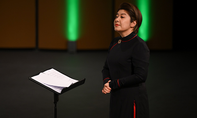 کنڈکٹر جیاو میاؤ نے نہایت روانی اور نفاست سے ہاتھوں کی جنبش کے ذریعے دھنوں کو رہنمائی فراہم کی۔