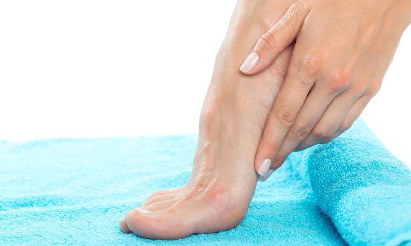 روزانہ 10–15 منٹ کے لیے نیم گرم پانی میں پاؤں بھگوئیں۔