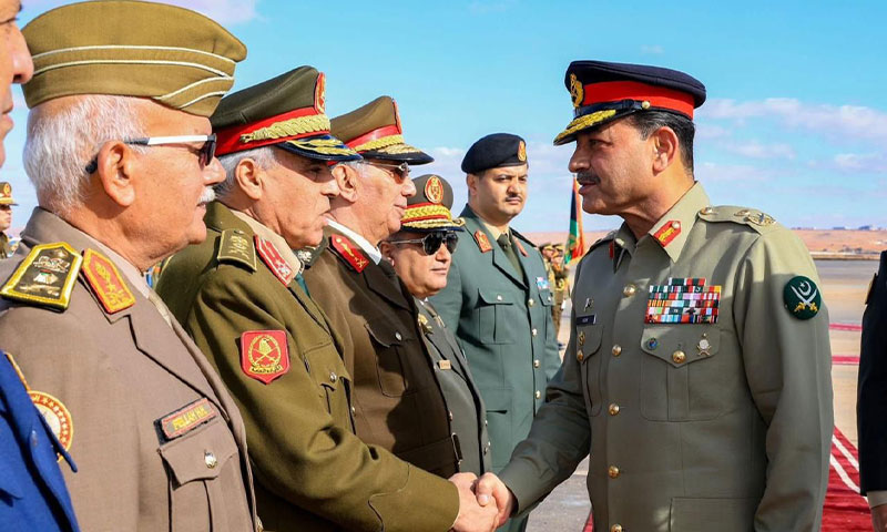 چیف آف ڈیفنس فورسز فیلڈ مارشل سید عاصم منیر نے لیبیا کا سرکاری دورہ کیا جہاں پاکستان اور لیبیا کے درمیان دفاعی تعاون بڑھانے پر اتفاق کیا گیا۔