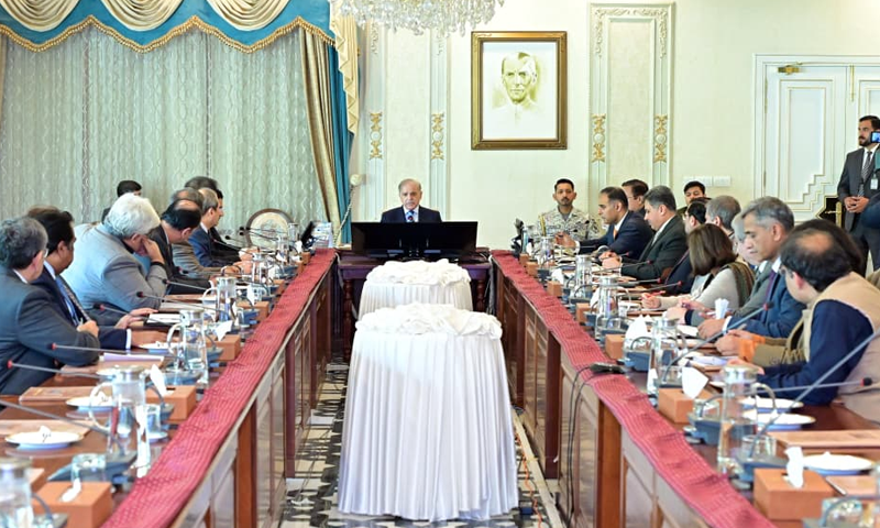 وزیراعظم محمد شہباز شریف نے وفاقی کابینہ اجلاس میں کہا ہے کہ حکومت ملک کی ترقی اور خوشحالی کے لیے ہر ممکن اقدامات کرنے کے لیے تیار ہے اور سیاسی جماعتوں کے ساتھ مذاکرات کے لیے بھی تیار ہے، اگر پی ٹی آئی جائز مذاکرات کے لیے آگے آئے۔ انہوں نے واضح کیا کہ مذاکرات کی آڑ میں بلیک میلنگ نہیں چل سکتی۔