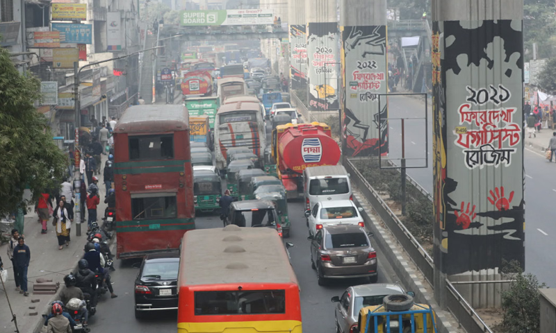 ڈھاکا میں سیاسی پروگراموں اور احتجاجی مظاہروں کے دوران ٹریفک جام معمول کی بات ہے، تاہم اتوار کے روز ایک ہی وقت میں متعدد مرکزی شاہراہوں کی بندش نے شہریوں کی مشکلات میں غیر معمولی اضافہ کر دیا۔