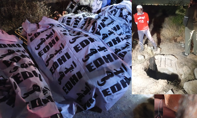 پولیس کا کہنا ہے کہ مقتولین کی لاشیں مائی کلاچی روڈ کے قریب ایک خالی پلاٹ میں موجود ہول/گٹر سے برآمد ہوئی تھیں۔ خاتون اور بچے کھارادر کے رہائشی تھے۔