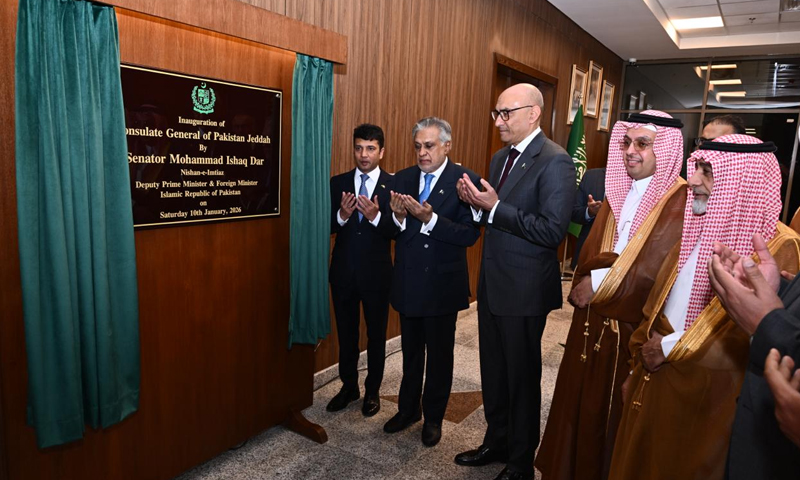 ترجمان دفتر خارجہ کے مطابق نائب وزیراعظم و وزیر خارجہ سینیٹر محمد اسحاق ڈار نے جدہ میں پاکستان کے قونصل جنرل خانے کی نئی چانسلری عمارت کا افتتاح کیا، افتتاحی تقریب میں پاکستان کے سفیر احمد فاروق، قونصل جنرل سید مصطفیٰ ربانی، سعودی حکام، پاکستانی کمیونٹی کے ارکان اور قونصل خانے کے افسران نے شرکت کی۔