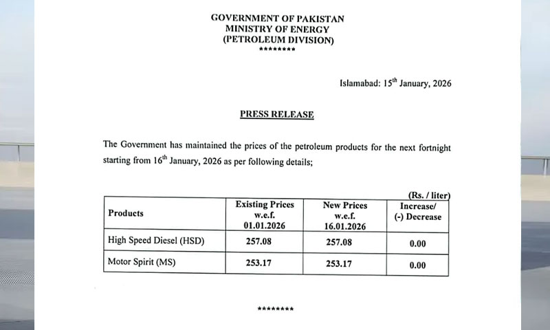 حکومت نے آئندہ 15 روز کے لیے پیٹرولیم مصنوعات کی قیمت برقرار رکھنے کا فیصلہ کیا ہے۔