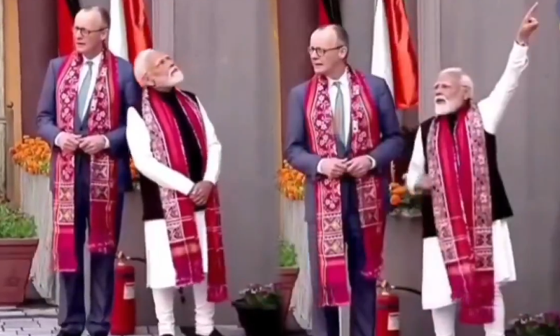 بھارتی وزیراعظم نریندر مودی ایک بار پھر سوشل میڈیا پر مذاق کا نشانہ بن گئے۔ ان کی ایک ویڈیو سوشل میڈیا پر وائرل ہو رہی ہے جس میں مودی مسلسل جرمن چانسلر اولاف شولز کی توجہ حاصل کرنے کی کوشش کرتے دکھائی دیتے ہیں لیکن چانسلر احتیاط کے ساتھ دوری برقرار رکھتے ہیں۔
