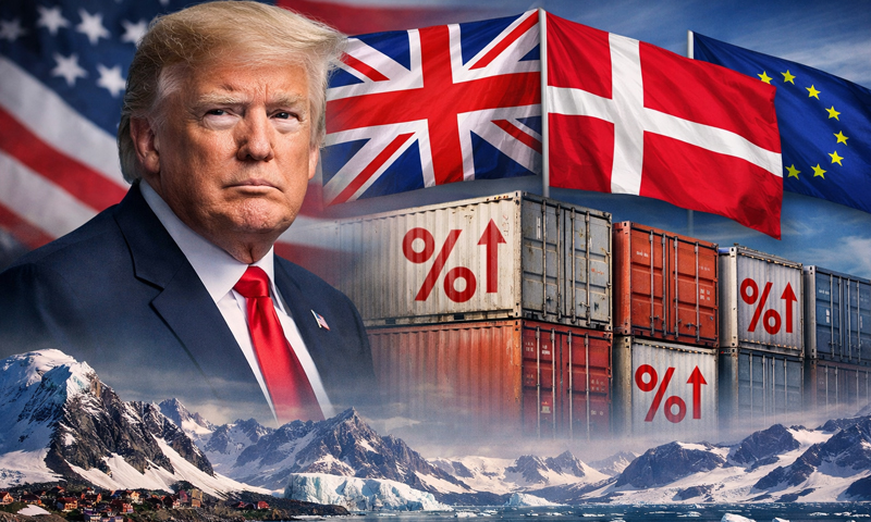 امریکی صدر ڈونلڈ ٹرمپ نے گرین لینڈ کے معاملے پر برطانیہ، ڈنمارک اور دیگر یورپی ممالک کے خلاف اضافی تجارتی ٹیرف عائد کرنے کے منصوبے کا اعلان کردیا ہے۔ یہ اقدام نیٹو اتحادی ممالک کے ساتھ امریکا کے تعلقات میں ایک نئی کشیدگی کا باعث بن گیا ہے۔
