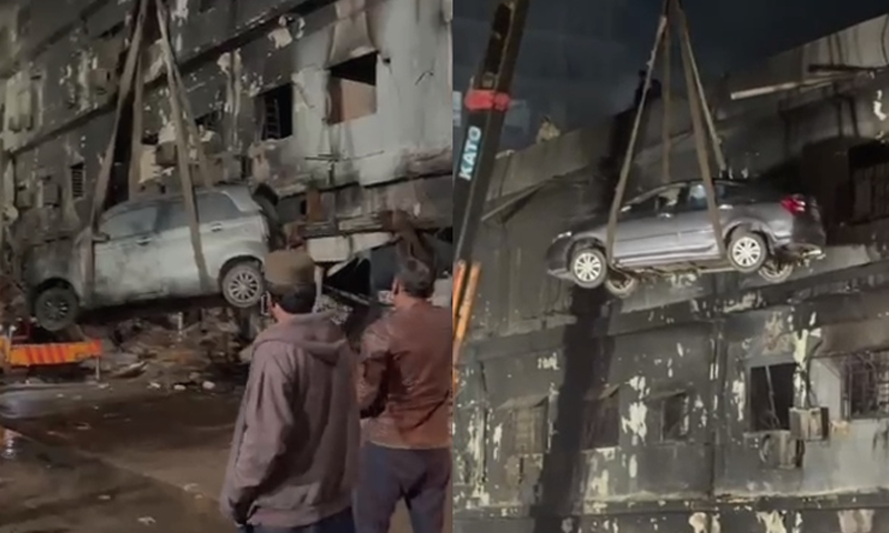 ریسکیو آپریشن کے دوران گل پلازہ کی چھت سے 7 گاڑیاں اتار لی گئیں، جن میں سے 2 گاڑیاں محفوظ حالت میں مالکان کے حوالے کردی گئیں۔ ایک تاجر عامر کے مطابق حیران کن طور پر ان کی دونوں گاڑیاں محفوظ رہیں، تاہم ان کی دکان پر کام کرنے والے 2 افراد تاحال لاپتا ہیں۔