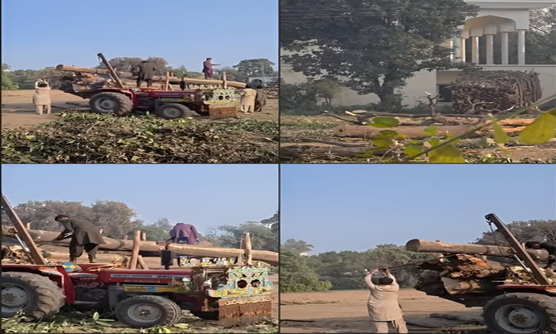 سیکیورٹی آفس کی جانب سے رپورٹ ہونے پر گارڈز نے موقع پر پہنچ کر درختوں کی کٹائی رکوائی اور لکڑی سے بھری ٹریکٹر ٹرالی کو بھی روک دیا۔