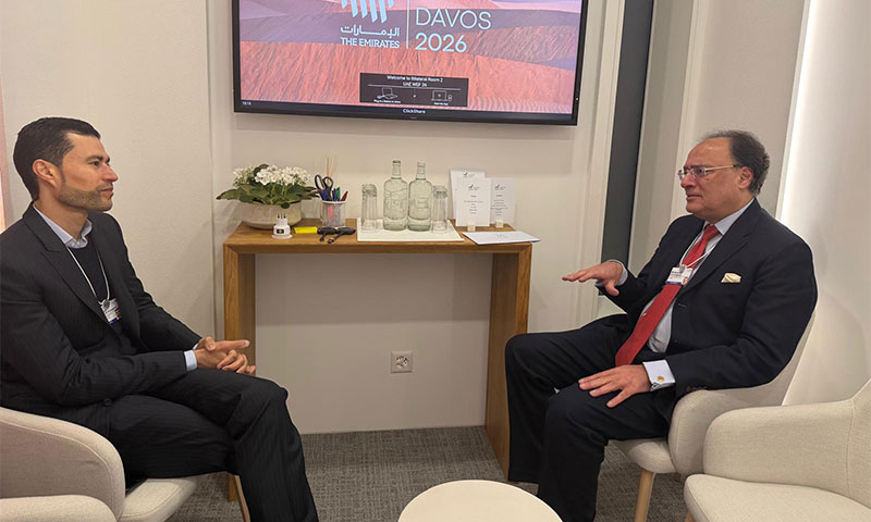 وفاقی وزیر برائےخزانہ و ریونیو، سینیٹر محمد اورنگزیب نے عالمی اقتصادی فورم کے سالانہ اجلاس کے موقع پر متحدہ عرب امارات کے وزیر برائے مالی امور، معالی محمد الحسینی سے ملاقات کی۔ دونوں ممالک کے درمیان جاری اقتصادی تعلقات کا جائزہ لیا گیا اور سرمایہ کاری کے شعبے میں تعاون کو مزید فروغ دینے پر تبادلہ خیال ہوا۔