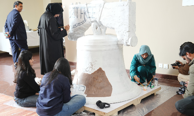 پاکستان میں امریکی مشن کی جانب سے ‘لیٹ فریڈم رِنگ’ کے عنوان سے آج لنکن کارنر اسلام آباد میں منعقدہ ایک تقریبِ رونمائی کے دوران فریڈم 250 لبرٹی بیل انیشی ایٹ کا سرکاری طور پر افتتاح کیا گیا۔
