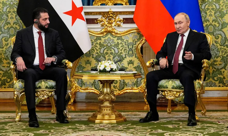 شامی صدر احمد الشرع نے ماسکو میں روسی صدر ولادیمیر پیوٹن سے ملاقات کی ہے، جہاں روس شام میں اپنے فوجی اور سیاسی اثر و رسوخ کو برقرار رکھنے کے لیے کوشاں ہے۔ یہ ملاقات اس وقت ہوئی ہے جب الشرع کو اقتدار سنبھالے ایک سال سے زائد کا عرصہ گزر چکا ہے اور وہ روس کے سابق اتحادی بشار الاسد کو اقتدار سے بے دخل کرچکے ہیں۔