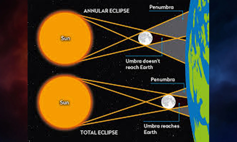 چونکہ چاند زمین سے دور ہوتا ہے تو وہ مکمل طور پر سورج کو بلاک نہیں کرپاتا اور جو نظارہ دیکھنے میں آتا ہے اسے رِنگ آف فائر کہا جاتا ہے۔