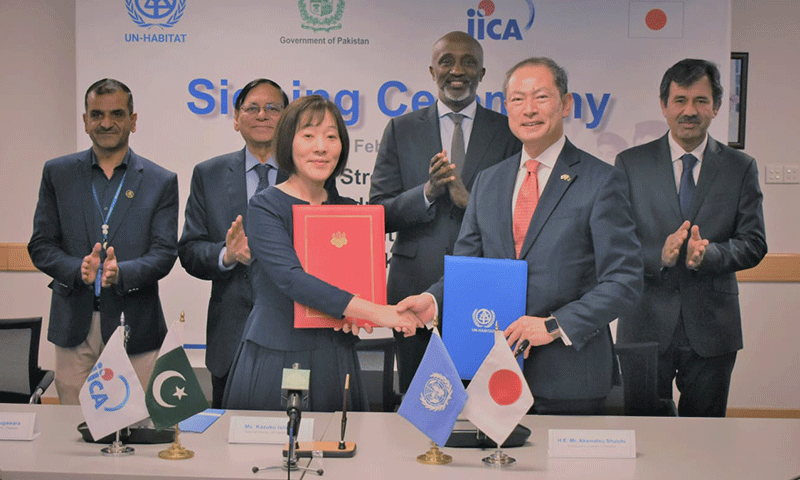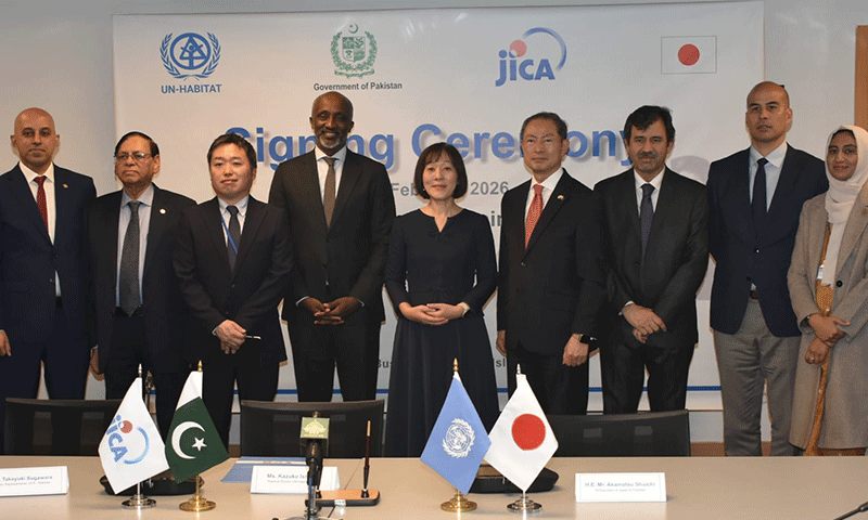 اسلام آباد میں 11 فروری 2026 کو منعقدہ تقریب میں حکومتِ جاپان، یو این ہیبی ٹیٹ اور جائیکا کے نمائندوں نے ’خیبر پختونخوا میں تعلیمی انفراسٹرکچر کو قدرتی آفات کے مقابلے کے قابل بنانے‘ کے منصوبے کے لیے ایکسچینج آف نوٹس اور گرانٹ معاہدے پر دستخط کیے۔