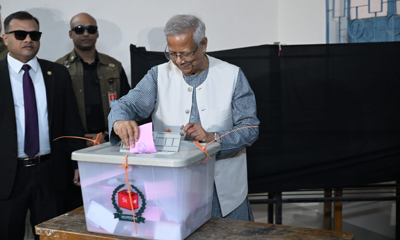 بنگلہ دیش قریباً 12 کروڑ 70 لاکھ ووٹرز جمہوریت کا امتحان دے رہے ہیں۔ یہ انتخابات اگست 2024 میں طلبا کی قیادت میں عوامی تحریک کے بعد طویل عرصے تک اقتدار میں رہنے والی شیخ حسینہ کی حکومت کے خاتمے کے بعد ملک کی جمہوریت کے لیے اہم ہیں۔ مقابلہ براہِ راست بنگلہ دیش نیشنلسٹ پارٹی (بی این پی) اور جماعتِ اسلامی کے اتحاد کے درمیان ہے۔