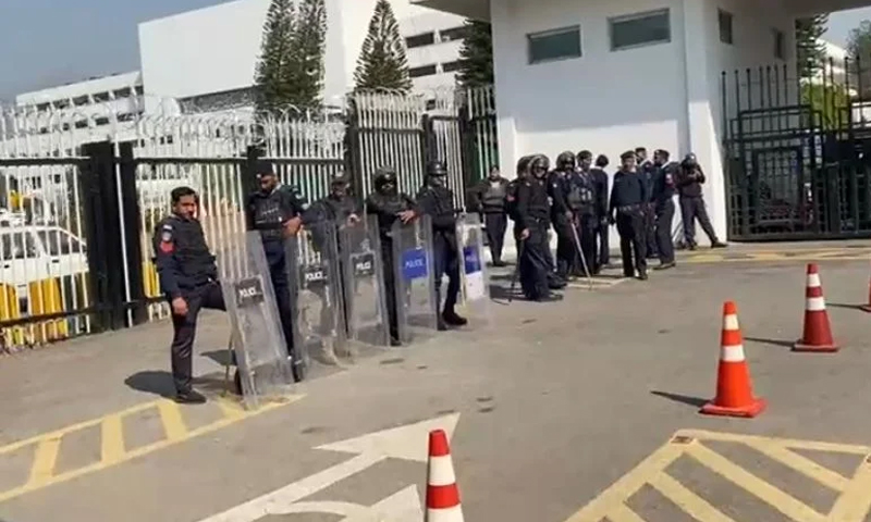 ریڈیو پاکستان چوک سے شاہراہ دستور کو مکمل طور پر بند کر دیا گیا اور پولیس نے شہریوں اور اراکین اسمبلی کو پارلیمنٹ کی جانب جانے سے روک دیا۔