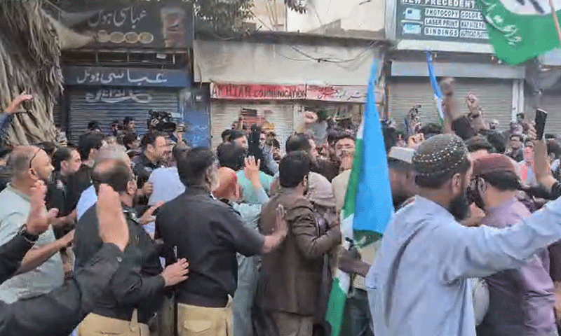 کراچی میں جماعت اسلامی کے مظاہرے پر پولیس کی شیلنگ اور لاٹھی چارج