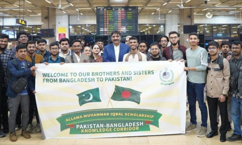 پاکستان بنگلہ دیش نالج کوریڈور کے تحت علامہ محمد اقبال اسکالرشپس پر منتخب 45 بنگلہ دیشی طلبا کا پہلا دستہ اعلیٰ تعلیم کے لیے کراچی پہنچ گیا۔ جن کا استقبال جناح انٹرنیشنل ایئرپورٹ پر ہائر ایجوکیشن کمیشن اور جامعات کے نمائندوں نے کیا۔