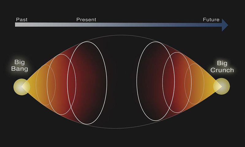 آخرکار بگ کرنچ تقریباً 33 ارب سال بعد واقع ہوگا یعنی بگ بینگ کے بعد کائنات کا حتمی سکڑاؤ۔