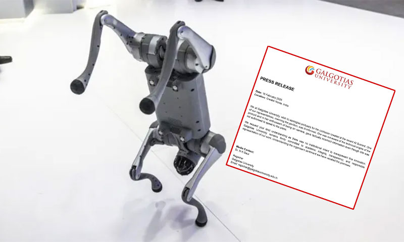 اسی دوران ایک نیا تنازع اس وقت کھڑا ہوا جب گلگوٹیاس یونیورسٹی (Galgotias University) کی پروفیسر نہا سنگھ نے چینی کمپنی Unitree Robotics کے تیار کردہ “Go2” روبو ڈاگ کو اپنی یونیورسٹی کی ایجاد قرار دیا۔ ویڈیو وائرل ہونے کے بعد سوشل میڈیا صارفین نے روبوٹ کی اصل شناخت کرلی، جس پر یونیورسٹی کو وضاحت دینا پڑی اور معاملہ سمٹ کی ساکھ پر اثر انداز ہوا۔