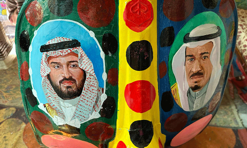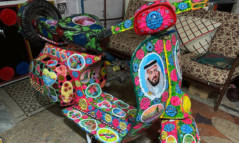 اسلام آباد کی ایک چھوٹی ورکشاپ میں پاکستانی فنکار محمد اعجاز اللہ مغل اور غلام شبیر نے ہاتھ سے تیار شدہ وینٹیج اطالوی ویسپا اسکُوٹر پر سعودی عرب کے کنگ سلمان اور ولی عہد محمد بن سلمان کی تصویریں اور مملکت کے مشہور مقامات کی رنگین جھلکیاں پینٹ کی ہیں۔