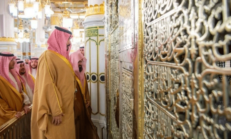 سعودی عرب کے ولی عہد اور وزیراعظم محمد بن سلمان نے مدینہ منورہ میں مسجد نبوی میں حاضری دی، جہاں انہوں نے روضۂ رسول ﷺ کے قریب ریاض الجنہ میں نماز ادا کی اور رسول اکرم ﷺ اور آپ ﷺ کے رفقائے کرام کو سلام پیش کیا۔