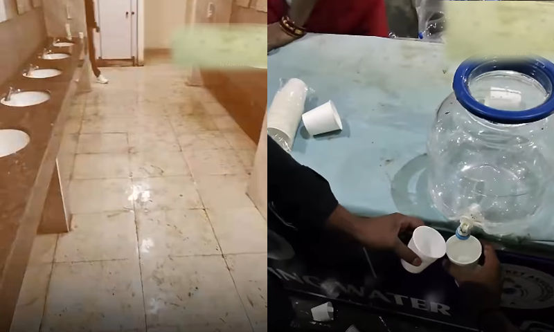 ٹی 20 ورلڈ کپ 2026 کے ایک میچ کے دوران ایک بھارتی صارف کی جانب سے شیئر کی گئی ویڈیو میں اسٹیڈیم کے بیت الخلا کی ابتر حالت، گندے فرش اور ناقابلِ برداشت بدبو کی شکایت کی گئی۔ صارف کے مطابق بیت الخلا میں صفائی کے لیے کوئی عملہ موجود نہیں تھا، جس کے باعث وہاں کھڑا ہونا بھی دشوار تھا۔
