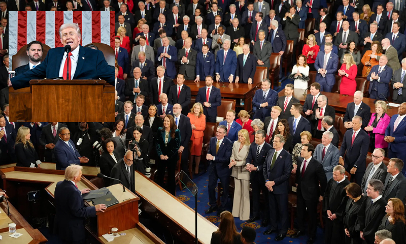 امریکی صدر ڈونلڈ ٹرمپ نے امریکی کانگریس کے مشترکہ اجلاس سے خطاب کرتے ہوئے تاریخ کا طویل ترین اسٹیٹ آف دی یونین خطاب کیا، جو تقریباً ایک گھنٹہ 48 منٹ جاری رہا۔