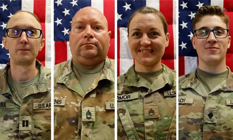 امریکی فوج نے 4 ہلاک شدگان کی شناخت ظاہر کی، جن میں یو ایس آرمی ریزرو کے کیپٹن کوڈی خورک (35)، سارجنٹ نوح ٹیٹجنس (42)، سارجنٹ نکول امور (39) اور سارجنٹ ڈیکلین کوڈی (20) شامل ہیں۔