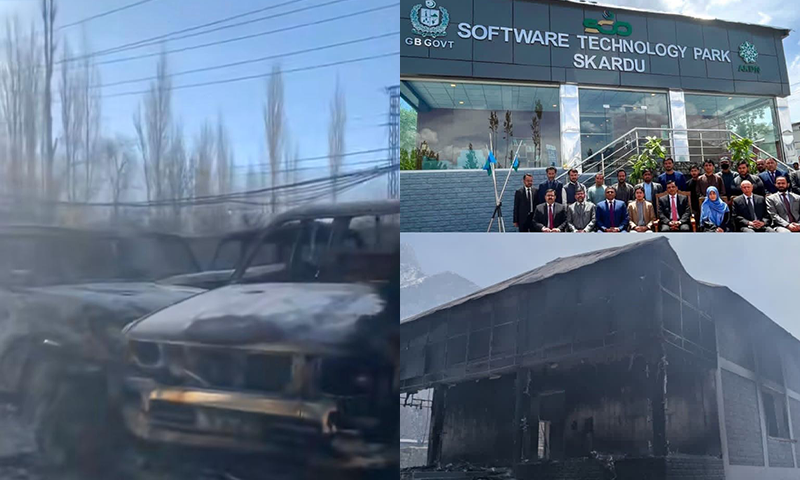مشتعل مظاہرین یہیں نہیں رکے بلکہ اسکردو کی پسماندگی ختم کرنے اور دنیا سے رابطہ قائم کرنے والے جدید آئی ٹی پارک کو بھی آگ لگا دی گئی اور اس کے علاوہ ایک اسکول کو بھی نذر آتش کیا گیا۔