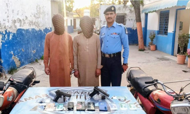 اسلام آباد پولیس نے شہر میں منظم جرائم پیشہ گینگز کے خلاف بڑے پیمانے پر کریک ڈاؤن کے دوران راہزنی کی وارداتوں میں ملوث ایک گینگ کے دو ارکان کو گرفتار کر لیا۔