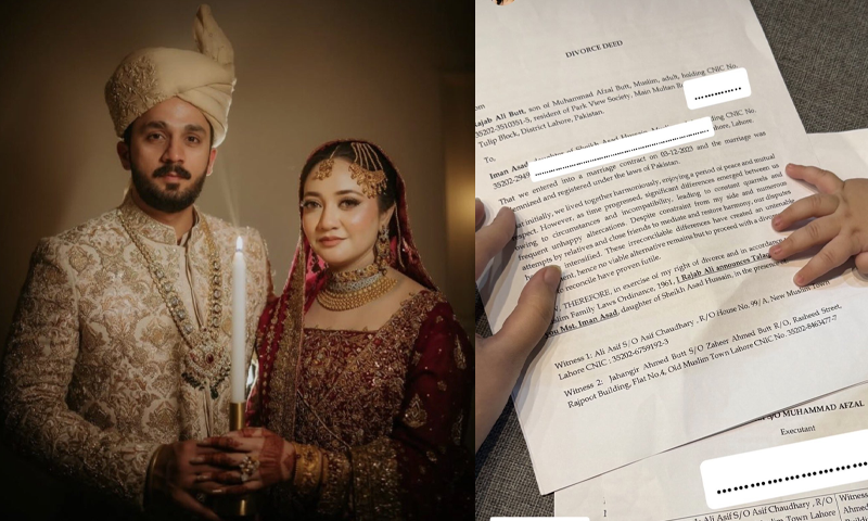 معروف یوٹیوبر رجب بٹ نے اپنی اہلیہ ایمان کو طلاق کا قانونی نوٹس بھجوا دیا ہے جس کی تصویر ایمان فاطمہ نے اپنے انسٹاگرام اکاؤنٹ پر شیئر کر دی ہے۔ نوٹس سامنے آنے کے بعد سوشل میڈیا پر اس معاملے نے نئی بحث چھیڑ دی ہے۔