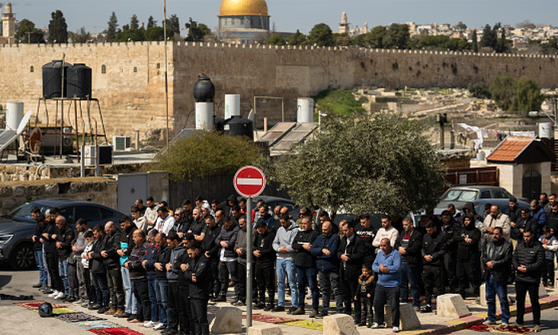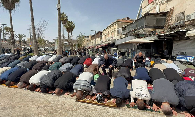 رپورٹس کے مطابق نمازیوں کی بڑی تعداد قدیم شہر کی فصیل کے قریب اور مسجد اقصیٰ کے دروازوں کے باہر جمع ہو کر نماز ادا کرتی رہی۔