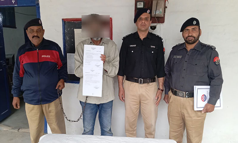 ملزم کو ایس ایچ او فیصل آباد کنور عمیر ساجد نے انتھک محنت، چھاپہ مار کارروائی، جدید ٹیکنالوجی (سی ڈی آر اور لائیو لوکیشن) اور خفیہ اطلاعات کی مدد سے ڈگلس پورہ فیصل آباد سے گرفتار کیا۔