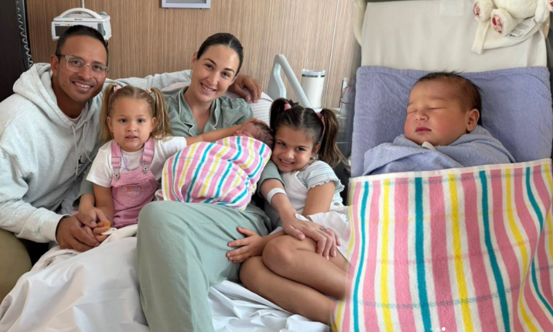 انہوں نے بتایا کہ نومولود بیٹی کا نام عمیرہ مایا خواجہ رکھا گیا ہے اور وہ 13 مارچ 2026 کو دنیا میں آئی۔ عثمان خواجہ نے نومولود کے ساتھ خاندان کی تصویر بھی شیئر کی اور لکھا کہ ’ہم بہت شکر گزار ہیں کہ ایک اور خوبصورت لڑکی پیدا ہوئی ہے، مکمل ٹیم کے لیے ابھی آٹھ مزید باقی ہیں‘۔