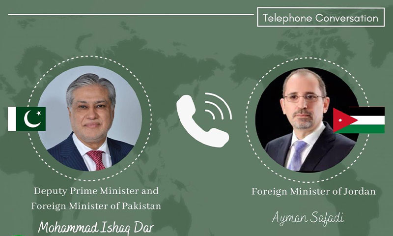 وزارتِ خارجہ کے مطابق، وزیر خارجہ محمد اسحاق ڈار نے گزشتہ شام اردن کے وزیر خارجہ ایمن الصفدی سے ٹیلیفونک گفتگو کی۔