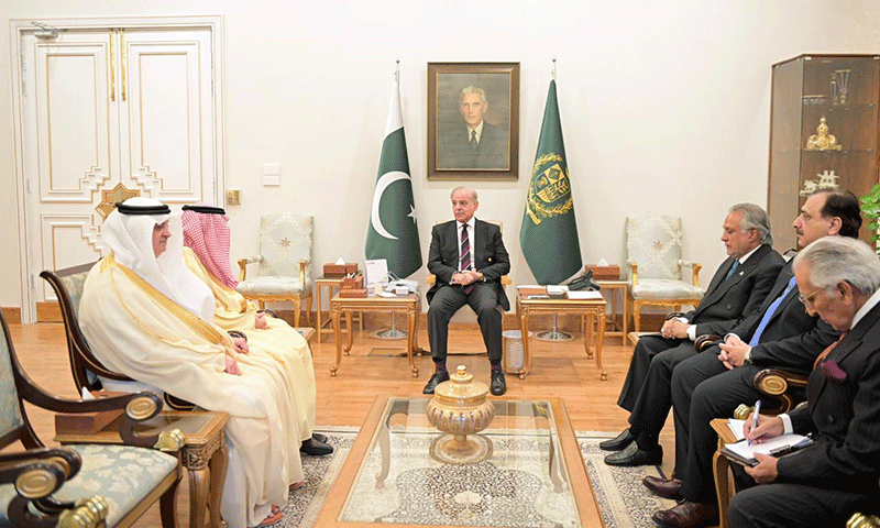 سعودی عرب کے وزیر خارجہ شہزادہ فیصل بن فرحان آل سعود نے آج وزیر اعظم محمد شہباز شریف سے ملاقات کی، جس میں پاکستان اور سعودی عرب کے درمیان برادرانہ تعلقات اور خطے میں امن و استحکام کے لیے تعاون پر تبادلہ خیال کیا گیا۔ ملاقات میں نائب وزیر اعظم و وزیر خارجہ سینیٹر محمد اسحاق ڈار، مشیر برائے قومی سلامتی لیفٹیننٹ جنرل محمد عاصم ملک اور معاون خصوصی برائے امور خارجہ سید طارق فاطمی بھی موجود تھے۔