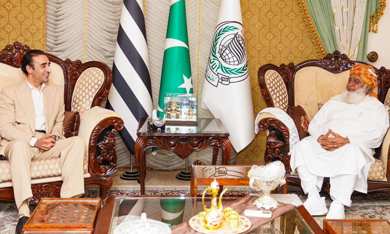اسلام آباد میں پاکستان پیپلزپارٹی کے چیئرمین بلاول بھٹو زرداری نے جمعیت علمائے اسلام کے سربراہ مولانا فضل الرحمان سے ان کی رہائش گاہ پر اہم ملاقات کی۔