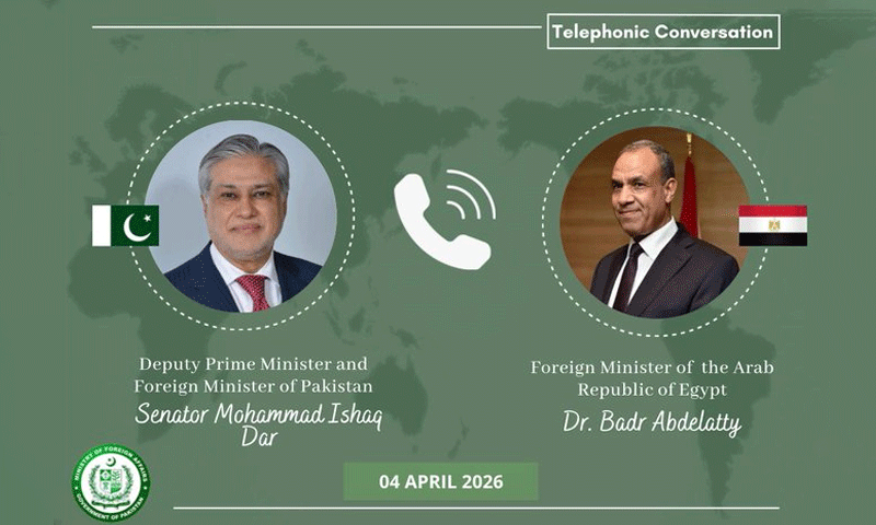 ترجمان دفتر خارجہ کے مطابق ہفتے کے روز نائب وزیراعظم اسحاق ڈار نے مصر کے ہم منصب بدر عبداللطیف سے ٹیلی فون پر گفتگو کی، اس موقع پر دونوں رہنماؤں نے حالیہ علاقائی صورتحال اور جاری سفارتی کوششوں پر تبادلہ خیال کیا۔