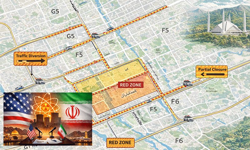 اسلام آباد میں امریکا اور ایران کے درمیان اہم مذاکرات کے پیش نظر ٹریفک کی روانی برقرار رکھنے کے لیے خصوصی ڈائیورژن پلان جاری کر دیا گیا ہے۔ شہریوں کو ہدایت کی گئی ہے کہ وہ غیر ضروری سفر سے گریز کریں اور متبادل راستے استعمال کریں۔