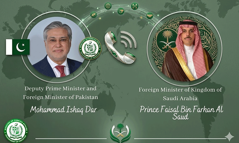 اسلام آباد میں پاکستان کے ڈپٹی پرائم منسٹر اور وزیر خارجہ سینیٹر محمد اسحاق ڈار نے سعودی عرب کے وزیر خارجہ شہزادہ فیصل بن فرحان سے گزشتہ شب فون پر بات چیت کی، جس میں خطے میں موجودہ کشیدہ صورتحال اور لبنان میں جنگ بندی کی خلاف ورزیوں پر تشویش کا اظہار کیا گیا۔