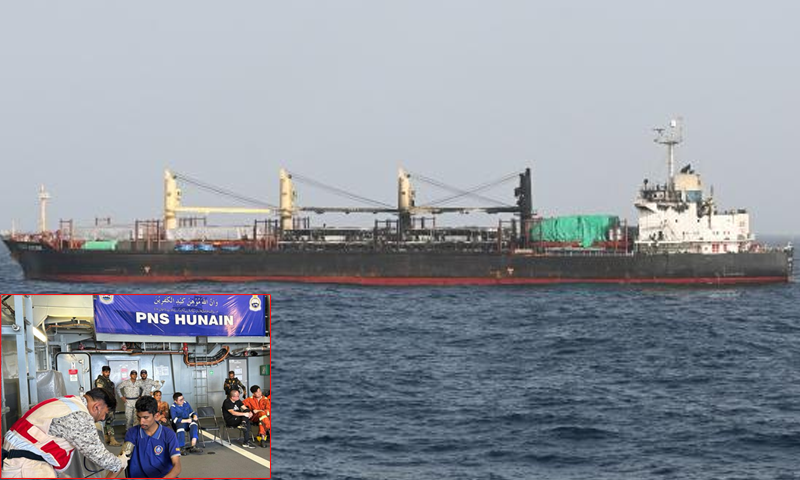 پاک بحریہ کی ماہرین پر مشتمل ٹیم نے تجارتی بحری جہاز پر لگی آگ بجھانے میں معاونت اورمتاثرہ افراد کوطبی امداد فراہم کرنے کے علاوہ عملے کو بحفاظت ریسکیو کیا اور تجارتی بحری جہاز کےنقصانات کا جائزہ لیا۔