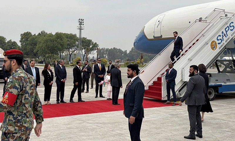 امریکی نائب صدر جے ڈی وینس کے ہمراہ خصوصی ایلچی اسٹیو وٹکوف اور جیرڈ کشنر بھی وفد میں شامل ہیں۔ وفد کی آمد پر نائب وزیراعظم و وزیر خارجہ اسحاق ڈار، چیف آف ڈیفنس فورسز و آرمی چیف فیلڈ مارشل سید عاصم منیر اور وزیر داخلہ سید محسن رضا نقوی نے استقبال کیا۔