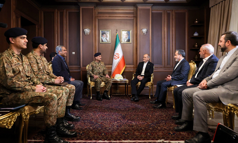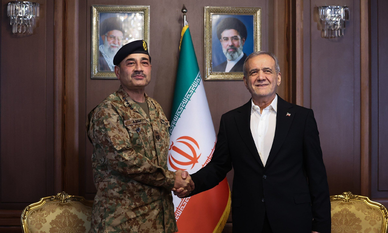 Iran’s President Masoud Pezeshkian meets with Pakistan’s Chief of Army Staff Field Marshal Syed Asim Munir in Tehran.