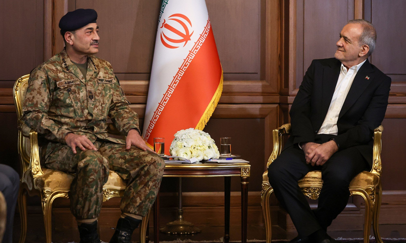 جمعرات کی شب فیلڈ مارشل جنرل سید عاصم منیر سے ملاقات کے دوران ایرانی صدر نے جنگ بندی کے لیے سہولت کاری میں جنرل عاصم منیر اور وزیراعظم شہباز شریف کے کردار کو سراہا۔ انہوں نے اسلام آباد میں ہونے والے مذاکرات کے دوران ایرانی وفد کی پرتپاک میزبانی پر بھی شکریہ ادا کیا۔