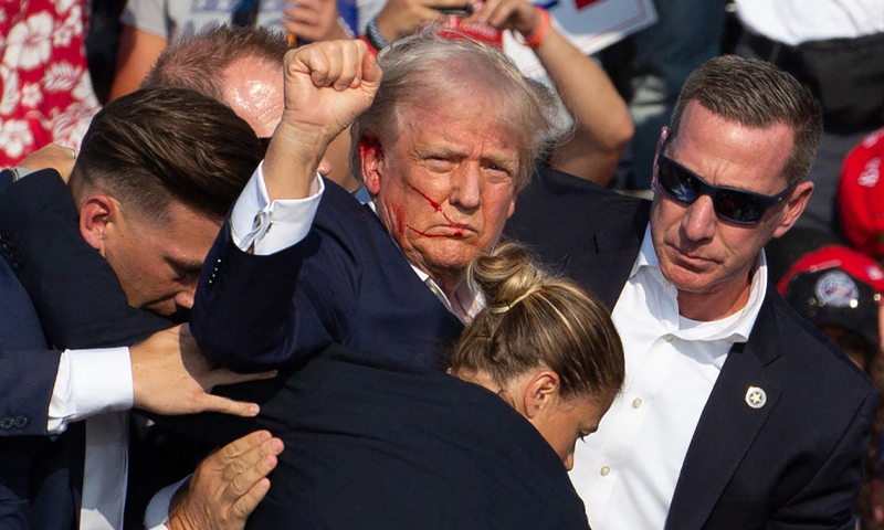 جولائی 2024 میں پنسلوانیا میں انتخابی ریلی کے دوران فائرنگ کا بڑا واقعہ پیش آیا جس میں ٹرمپ کے کان پر گولی لگی جبکہ ایک شخص ہلاک اور 2 زخمی ہوئے۔ حملہ آور کو موقع پر ہی مار دیا گیا۔ اس واقعے کو امریکی تاریخ کے سنگین ترین حملوں میں شمار کیا گیا۔