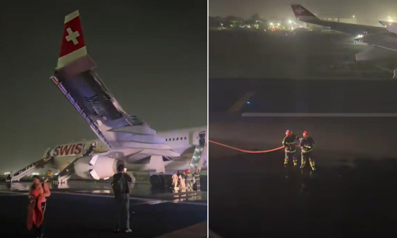 دہلی: سوئس طیارے کے انجن میں ٹیک آف کے دوران آگ لگ گئی، 6 مسافر زخمی