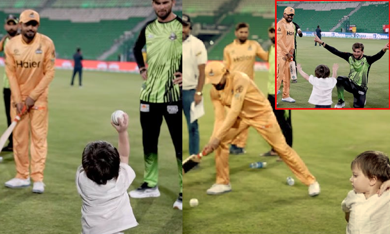 قومی کرکٹر بابراعظم اور شاہین آفریدی کے بیٹے عالیار کے ساتھ کرکٹ کھیلنے کی ایک ویڈیو سوشل میڈیا پر وائرل ہو رہی ہے جسے صارفین کی جانب سے خوب پسند کیا جا رہا ہے۔